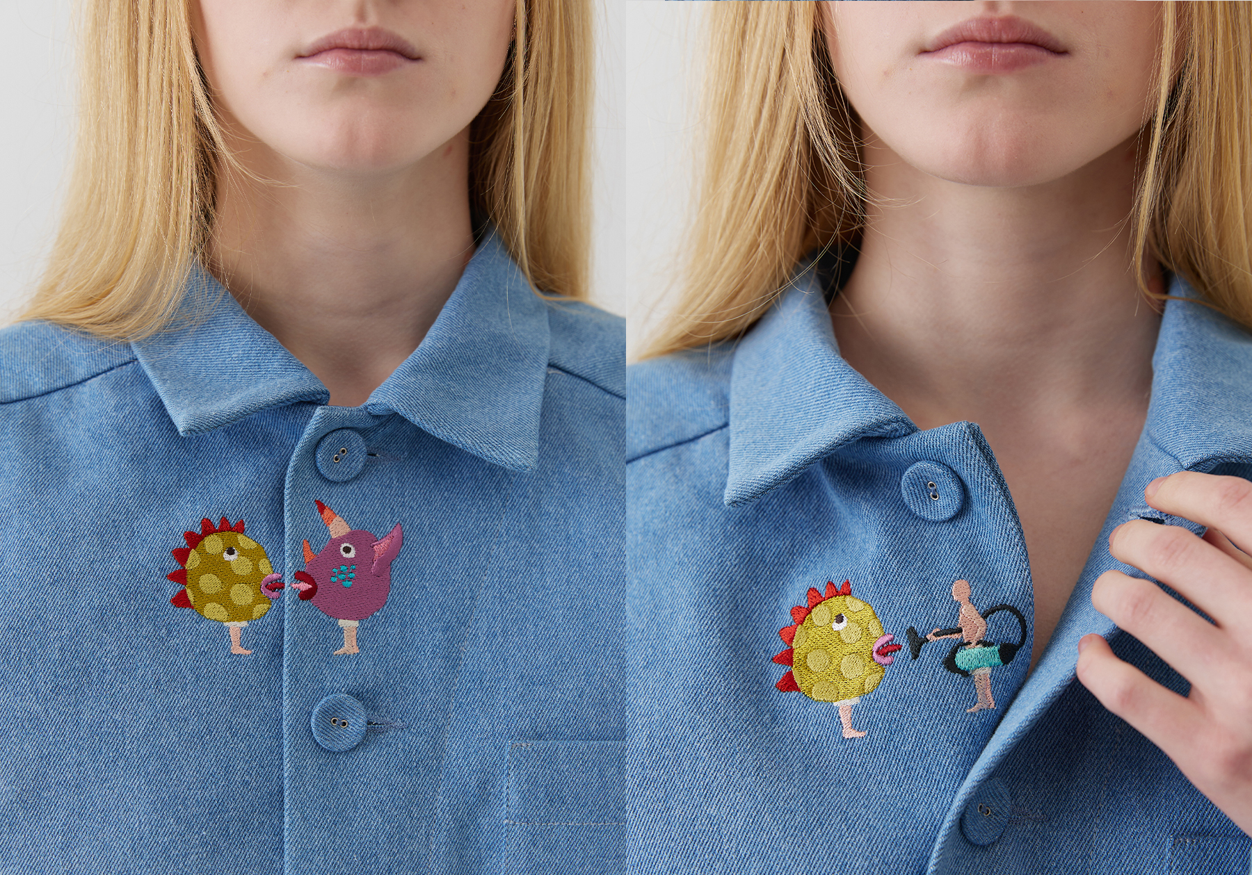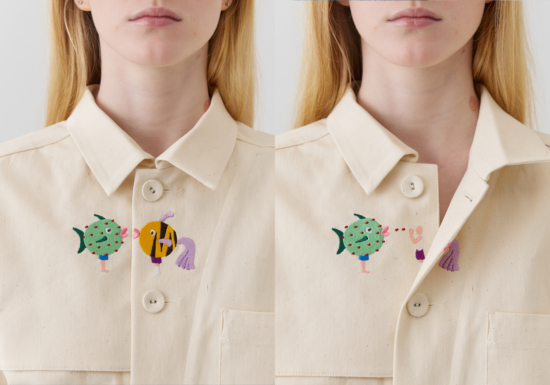 Я хотел рассказать историю про одежду. О том, что иногда она становится маской, которая, как маски в античном театре, может ярко рассказать другим людям о том, кто мы и что мы сейчас чувствуем. А иногда это маска, которую можно надеть или снять, позволяя себе почувствовать себя кем-то новым. Основным сюжетом стали люди в масках животных и животные в масках людей. И мне нравится, что часто сюжет того, что происходит с персонажем, отличается от того, что происходит с его маской. Так наши рубашки имеют много слоёв, и под каждым из них скрывается новая подробность, как и в нас самих — под каждым образом скрываются все новые детали